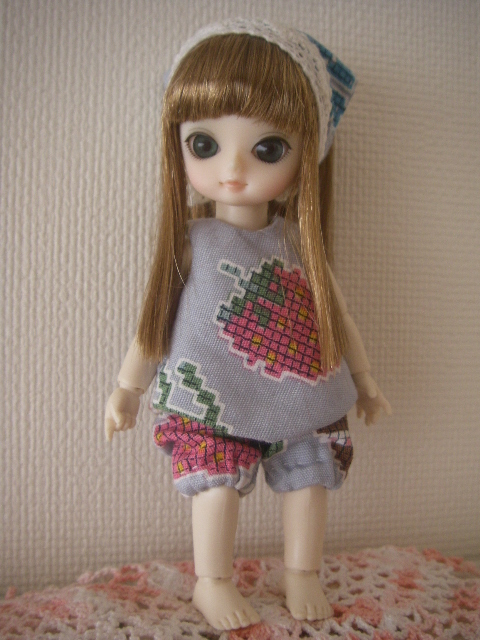 トップス、ドロワーズ、ヘッドドレス(もどき)の3点セットになりました。